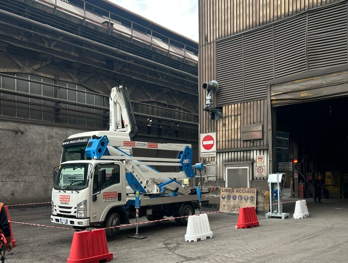 Fin da subito sono emerse alcune criticità specifiche: la necessità di mantenere un’adeguata distanza dal materiale, a causa delle elevate temperature, e l’obbligo di non interferire con il passaggio continuo di pale meccaniche e mezzi pesanti. L’area di intervento si configurava infatti come un corridoio operativo piuttosto stretto, dove ogni installazione doveva essere attentamente studiata per non intralciare le attività.
